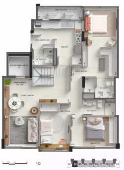 • Coberturas duplex de 3 quartos, sendo 1 suíte, com ambientes amplos e bem distribuídos