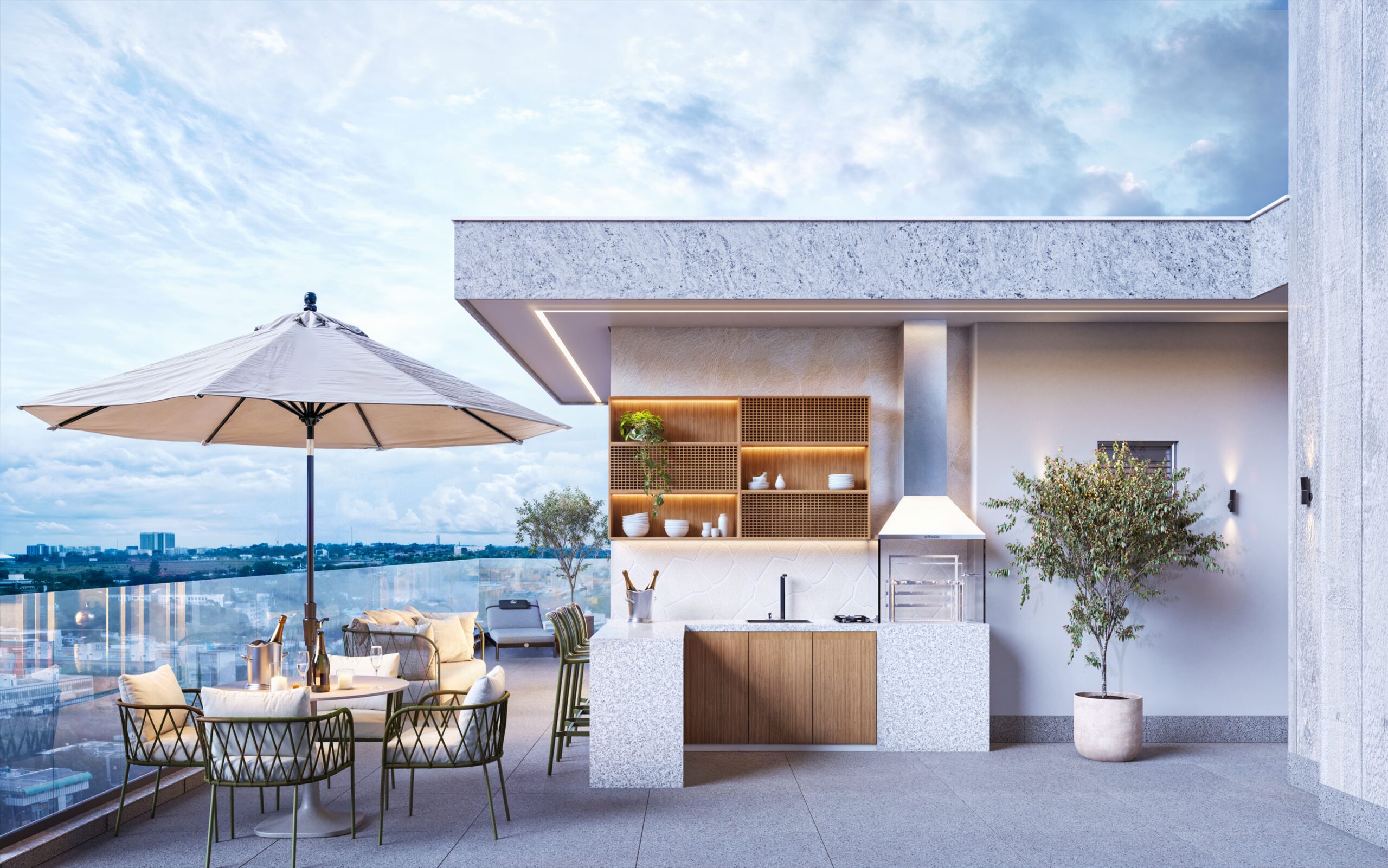 • UNIDADE DE MEIO PAVIMENTO TIPO PERSPECTIVA CHURRASQUEIRA TERRAÇO
